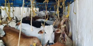 ଭାରସାମ୍ୟ ହରାଇ ଓଲଟି ପଡିଛି ଗୋରୁ ବୋଝେଇ କଣ୍ଟେନର ।