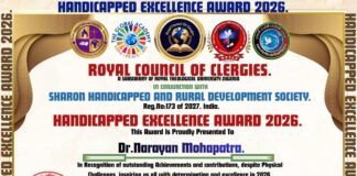 ଆନ୍ତର୍ଜାତୀୟ ରୟାଲ କାଉନସିଲ ମାନବ ଅଧିକାର ନାଇଜେରିଆ ପକ୍ଷରୁ ହାଣ୍ଡିକ୍ୟାପଡ଼ ଏକ୍ସଲେନ୍ସ ଆୱାର୍ଡ 2026...