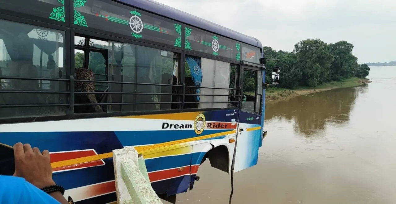 କଟକ,o୪/୧୦(ଡି.ଏଚ ବ୍ୟୁରୋ):-କଟକ ମହାନଦୀର ଜାତମୁଣ୍ଡିଆ-ସୁବର୍ଣ୍ଣପୁର ସେତୁରେ ଭାରସ୍ୟାମ ହରାଇ ଏକ ବସ୍ ସେତୁବାଡ଼ ଭାଙ୍ଗି ନଈ ଭିତରକୁ ଓହଳି ରହିଛି l ଫଳରେ ବସ୍ ରେ ଥିବା ସମସ୍ତ ଯାତ୍ରୀଙ୍କୁ ସୁରକ୍ଷିତ ଭାବେ ଉଦ୍ଧାର କରାଯାଇ ଥିବା ବେଳେ ଉକ୍ତ ଘଟଣା ପାଇଁ ଡ୍ରାଇଭରର ବେପରୱା ଗାଡ଼ି ଚାଳନାକୁ ଦାୟୀ କରାଯାଇଛି। ଏବଂ ଯାତ୍ରୀବାହୀ ବସ୍ ଟି ଅନୁଗୁଳରୁ ଭୁବନେଶ୍ବର ଯାଉଥିଲା।।