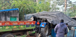 ଭାରସାମ୍ୟ ହରାଇ ଚା’ ଦୋକାନ ଉପରେ ମାଡ଼ିଗଲା ଟ୍ରାକ୍ଟର ।
